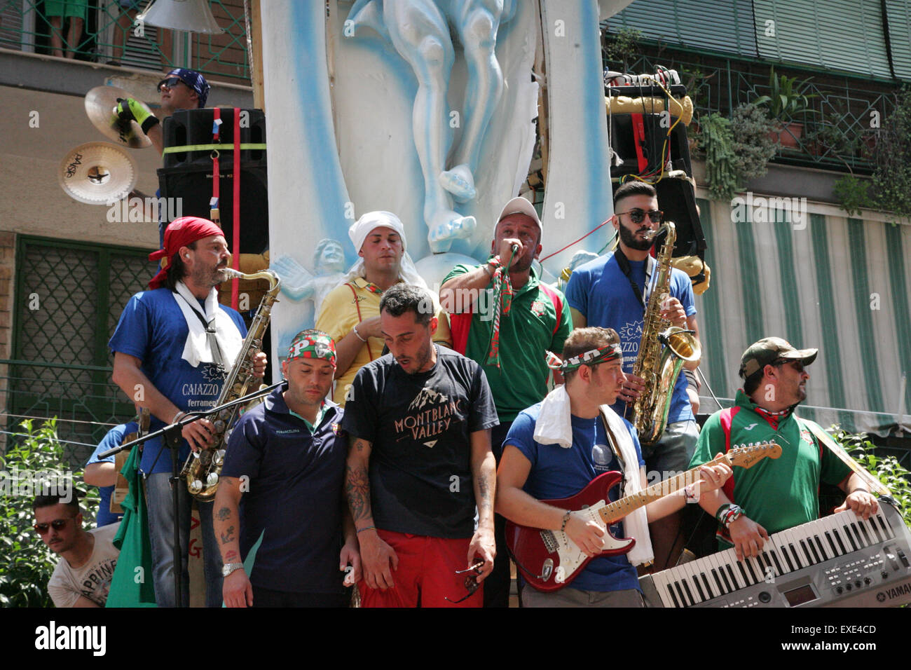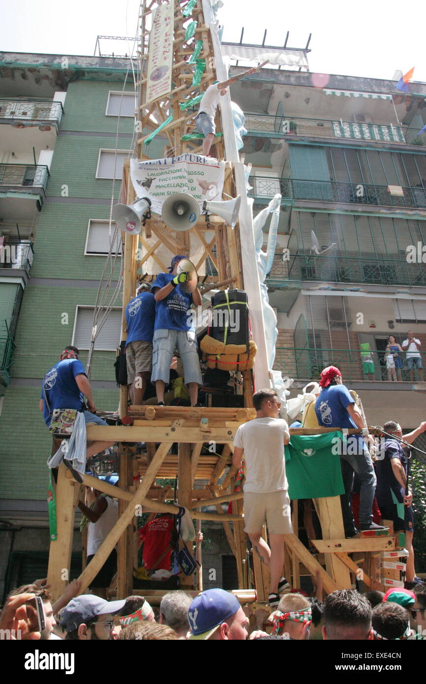 Casavatore Italy 12th July 2015 People Participate In The Celebration Of The Feast Of Gigli Casavatore 2015 It Is A Traditional Ballad Of The Obelisks Of Wood And Paper In Honor To